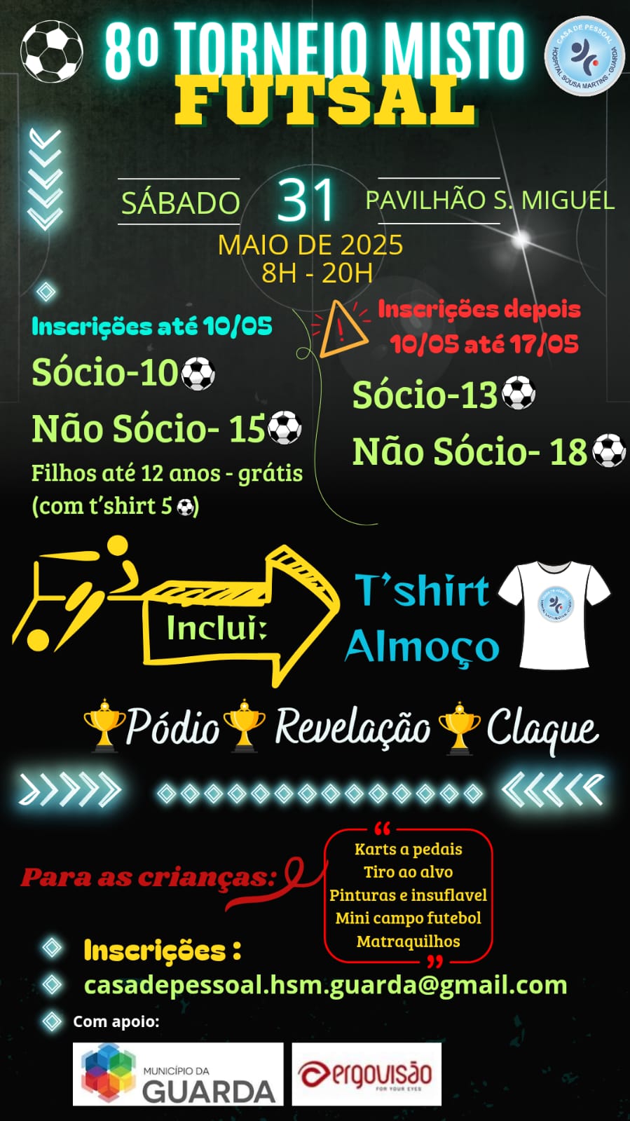 Todas as segundas-feiras (exceto se feriado, ou algum aviso prévio) a Casa de Pessoal tem uma hora, entre as 22h e as 23h, a troco de 1€ simbólico, para a prática desportiva de futsal. Esperemos em breve suprir mais modalidades que já foram pedidas, por alguns sócios, como o voleibol. Gostávamos também de saber quais as tuas expectativas e que...